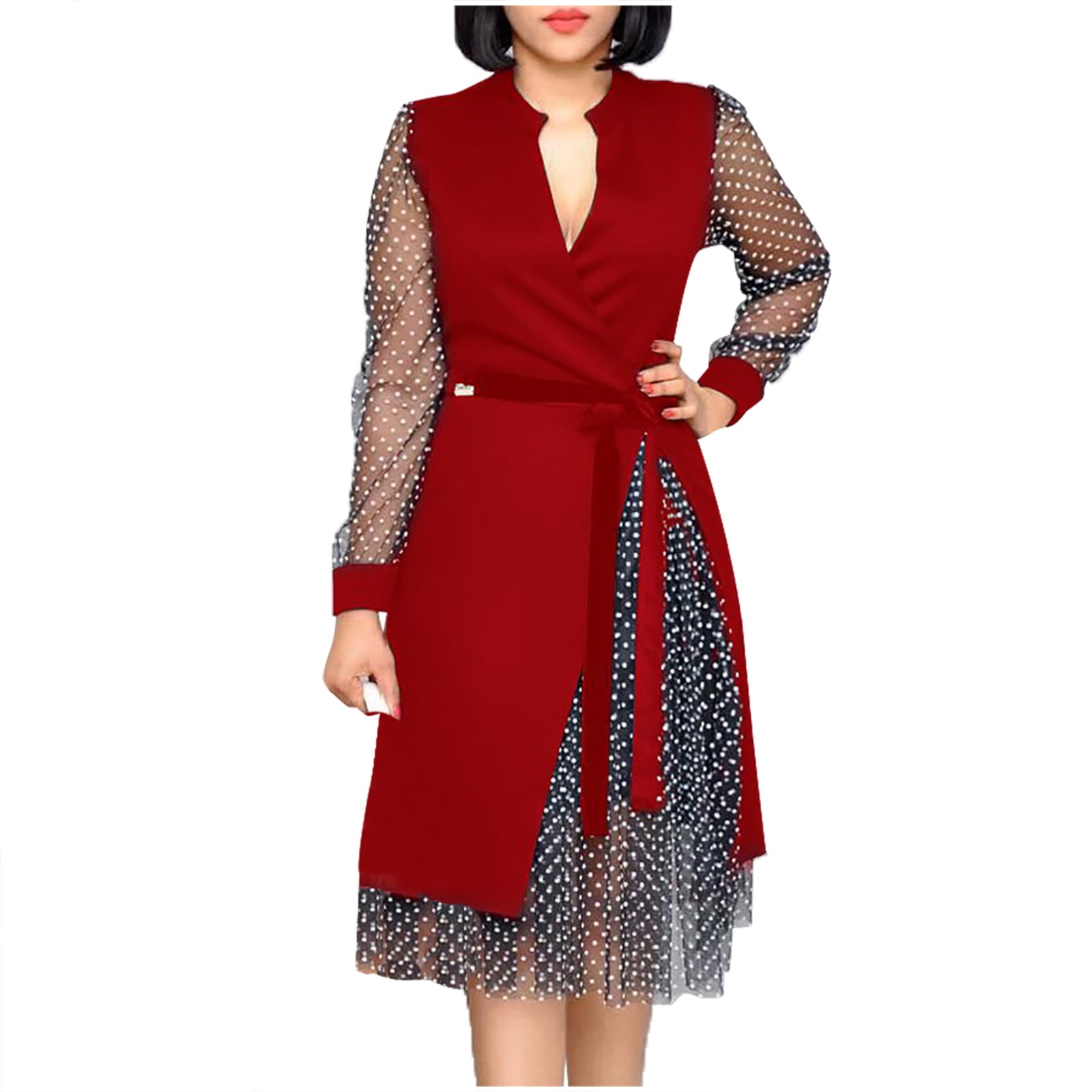 Airpow Women Sleeveless V Neck Dress Womens Fashion Casual Splicing Point Print V Neck Split Fork Long Dress Beach Dresses Women S Fashion V Neck Stitching Polka Dot Mesh Slit Dress Walmart Com